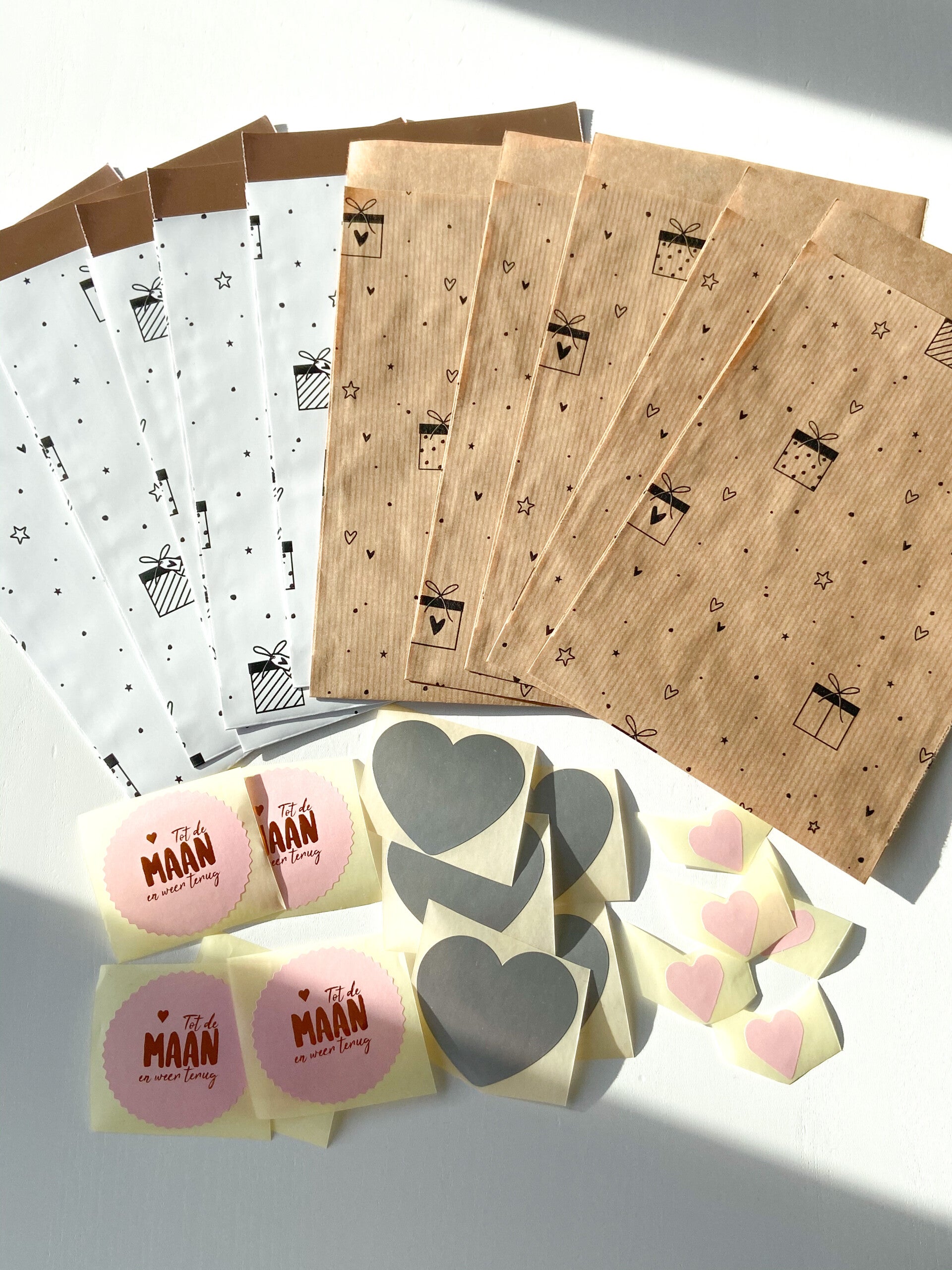 - 5 x cadeautje wit-zwart zakje 12 x 19.