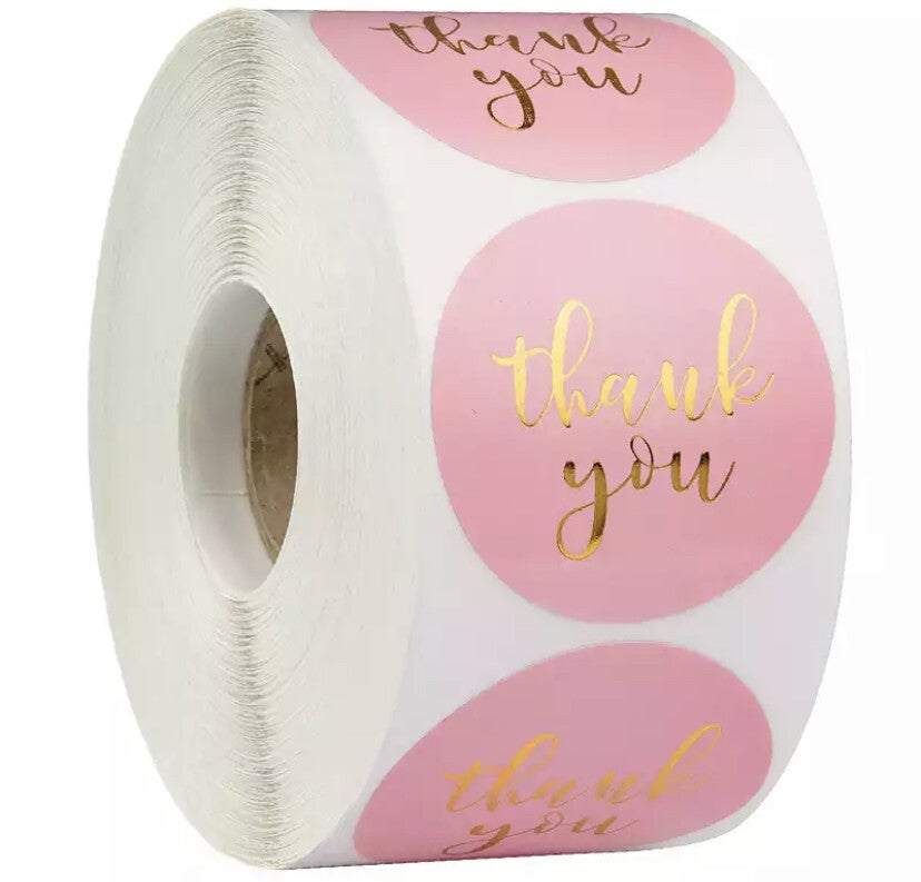 Thank you pink sluitstickers! Op rol (500 stuks)