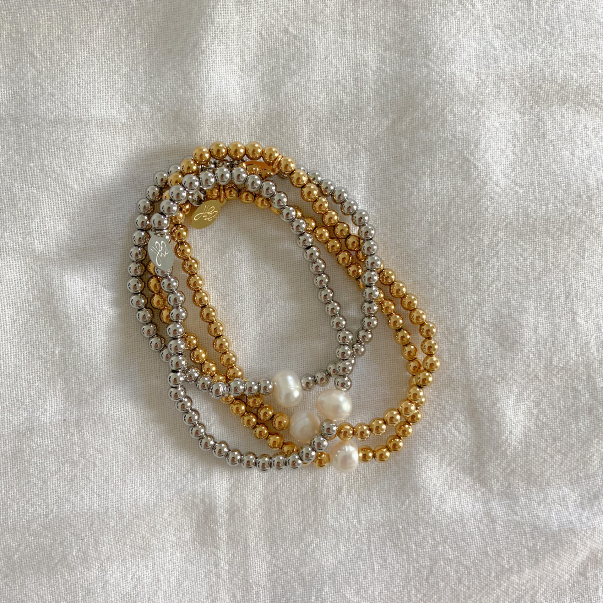 Big pearl bracelet goud!