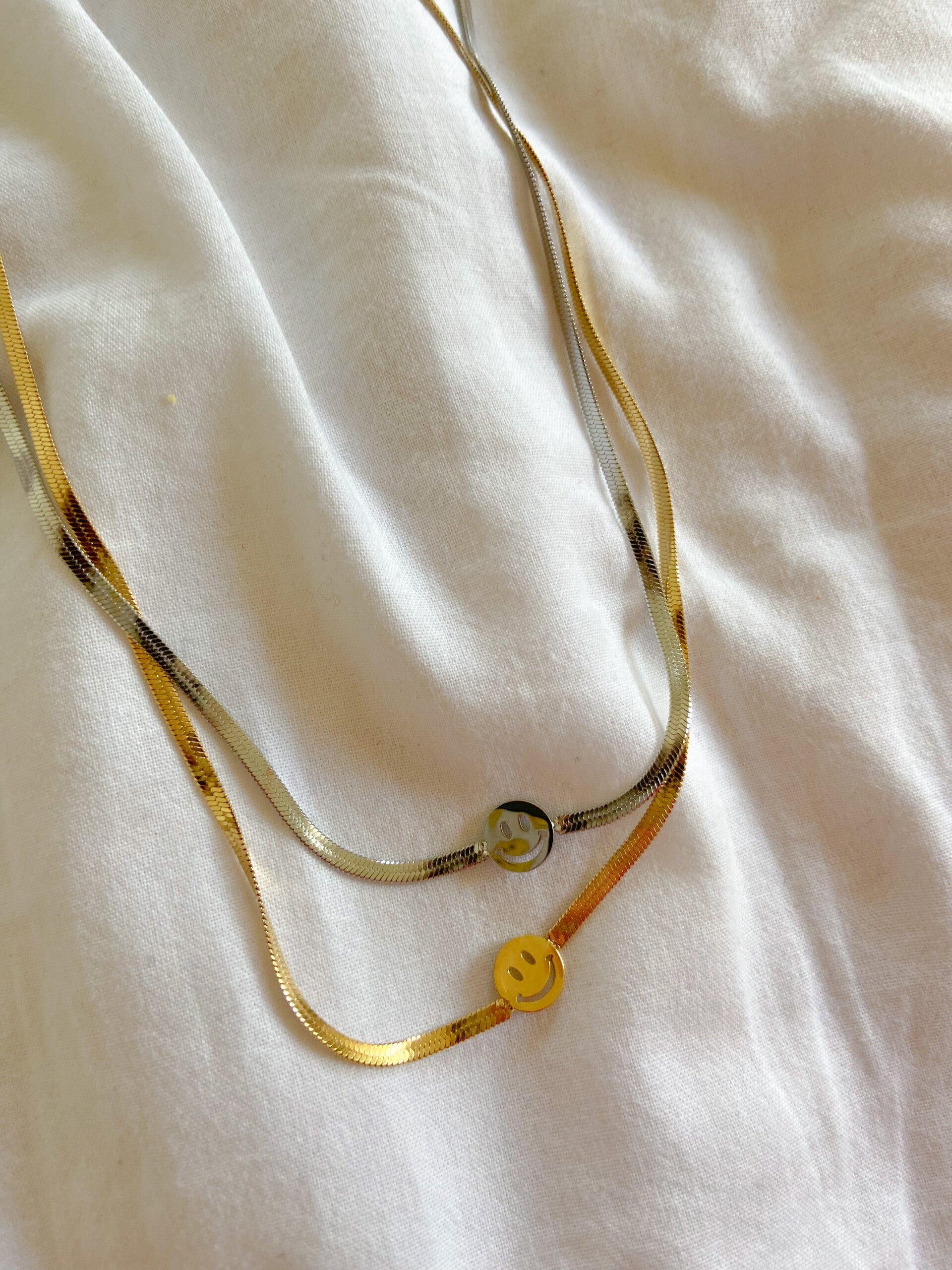 Smiley flat necklace goud!