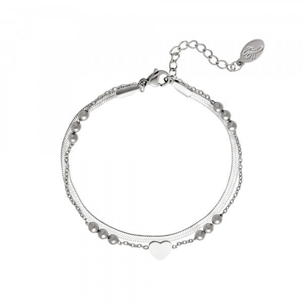 Flat - heart dubble bracelet - zilver