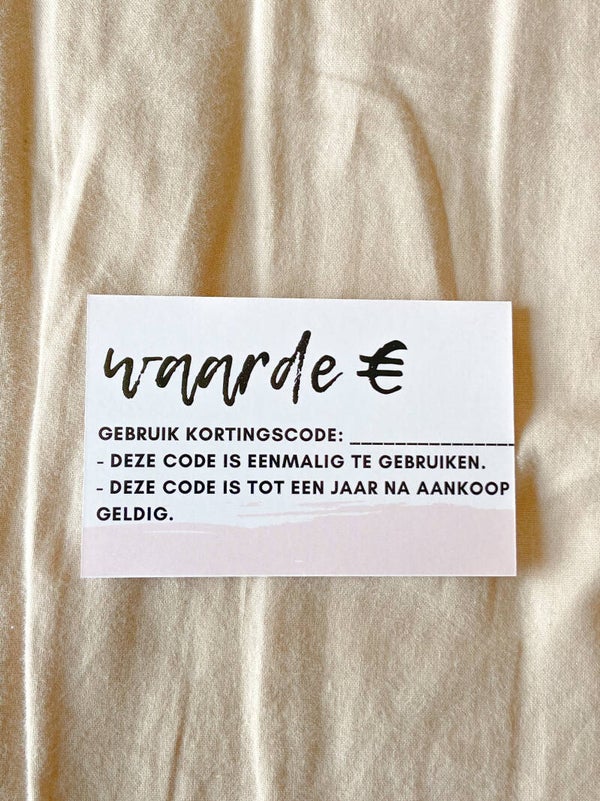 • Je ontvangt bij de cadeaubon een exclusieve kortingscode, het kaartje wordt dus naar je opgestuurd met een exclusieve kortingscode die eenmalig te gebruiken is.