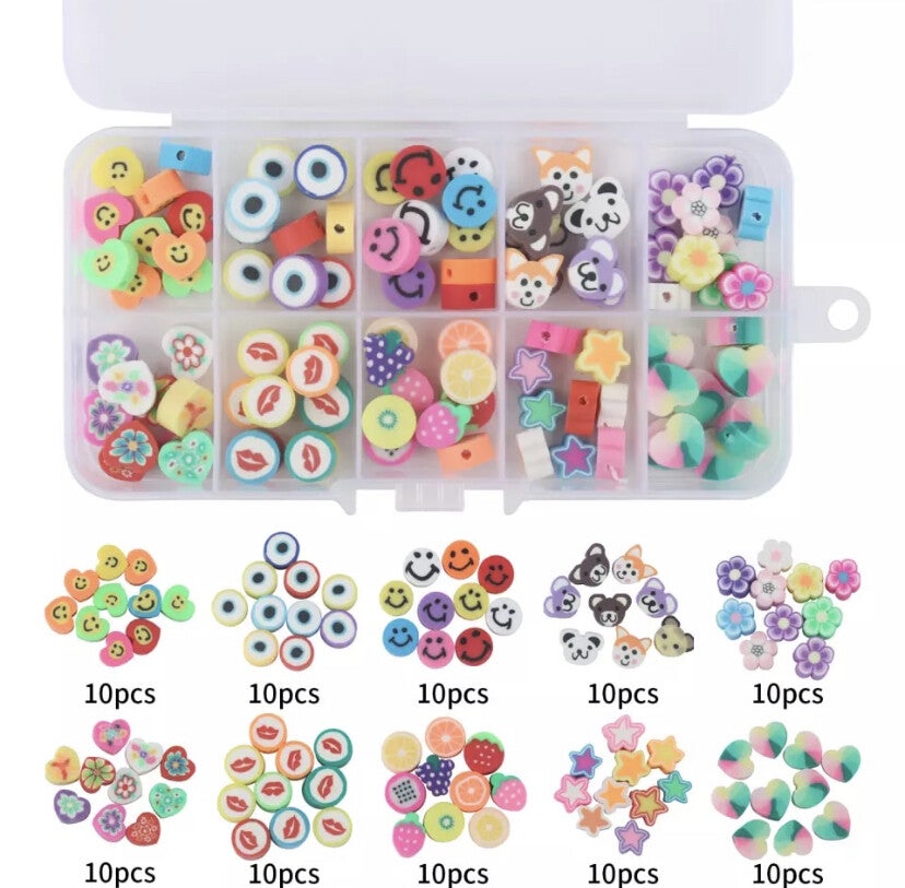 - Dit product bevat 10 verschillende soorten polymeerkralen, van elk 10 stuks. (Inclusief bakje)